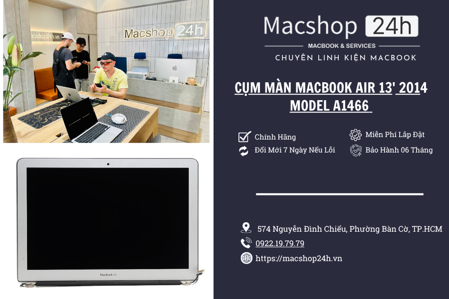 📣 Gọi ngay Macshop24h để thay cụm màn MacBook Air 13″ A1466 – New 100%, lấy ngay trong ngày, bảo hành 06 tháng!