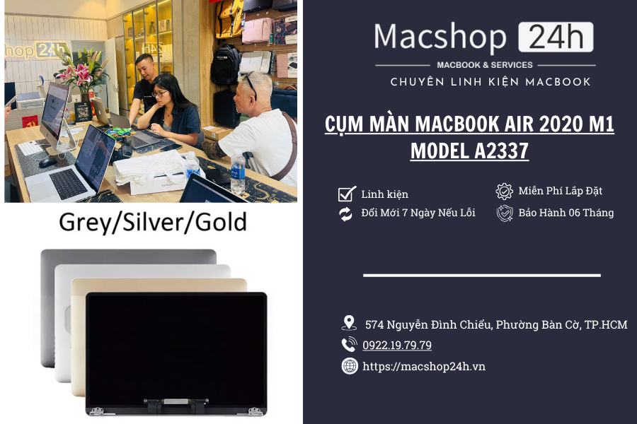 📣 Gọi ngay Macshop24h để thay cụm màn MacBook Air M1 (A2337) – Chính hãng, thay nhanh, bảo hành 06 tháng!