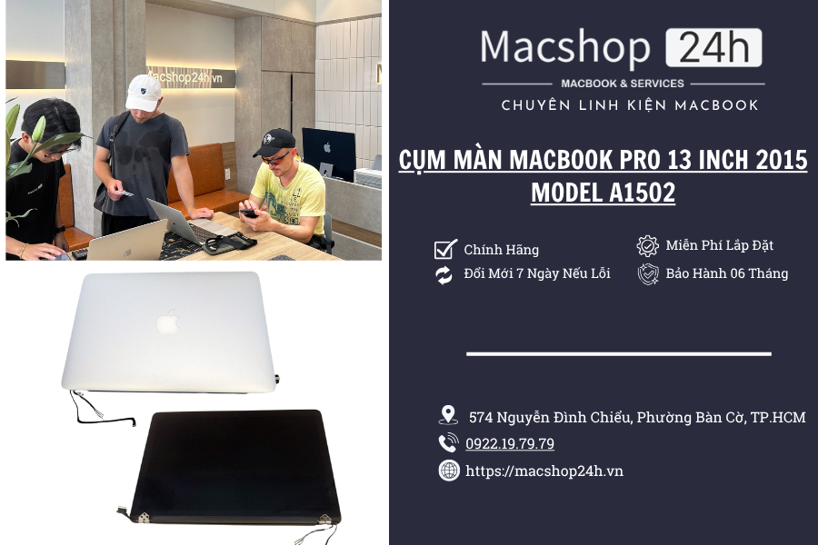 📣 Gọi ngay Macshop24h để thay cụm màn MacBook Pro 13″ A1502 – Chính hãng, zin 99%, thay nhanh, bảo hành 06 tháng!