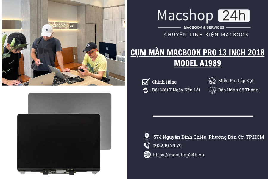 📣 Gọi ngay Macshop24h để thay cụm màn MacBook Pro 13″ A1989 – Chính hãng 99%, thay nhanh, bảo hành 06 tháng!