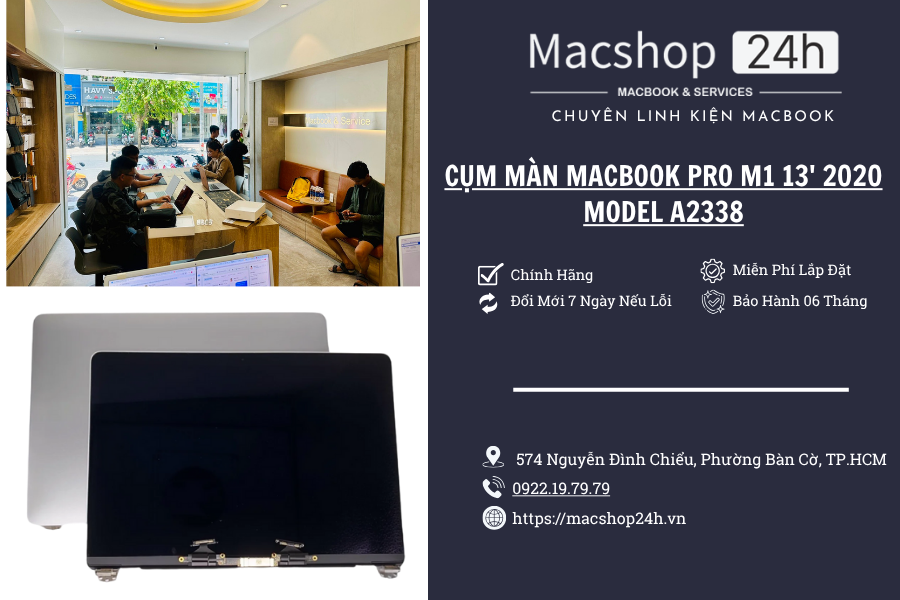cụm màn macbook pro m1, lcd macbook a2338, thay màn macbook pro 13 m1, lcd retina a2338, macshop24h thay màn