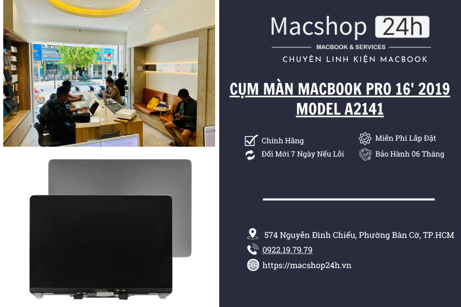 cụm màn macbook pro 16 2019, màn hình macbook a2141, thay màn macbook pro 16 inch, macshop24h thay màn chính hãng