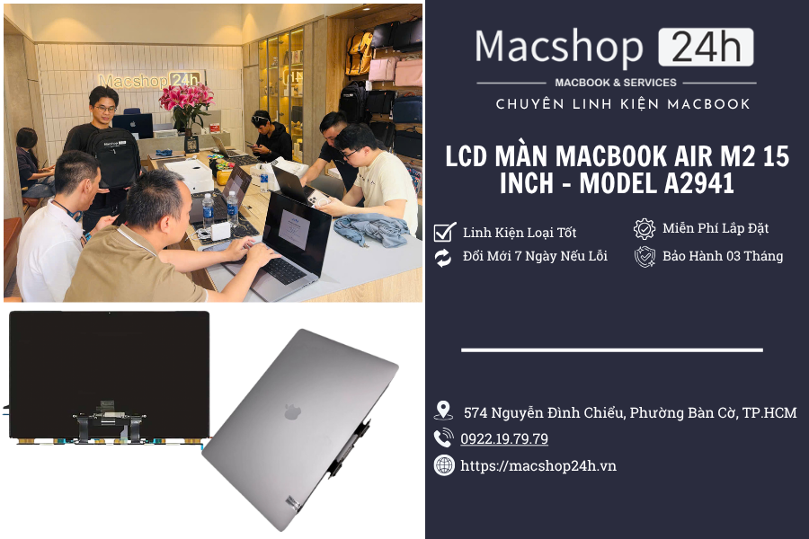 thay màn hình macbook air m2 15 inch, lcd macbook air a2941, màn hình macbook m2 bị sọc, sửa macbook air m2 lấy liền, thay lcd macbook chính hãng