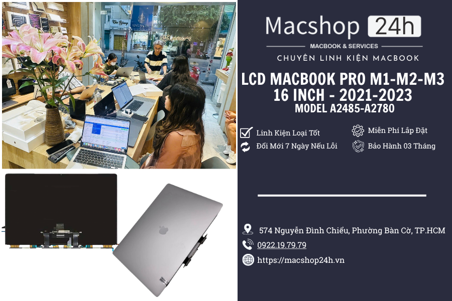 thay màn hình macbook pro 16 inch, lcd macbook a2485, lcd macbook a2780, màn hình retina xdr macbook m1 m2 m3, sửa màn hình macbook pro 2021 2023, macshop24h lcd macbook