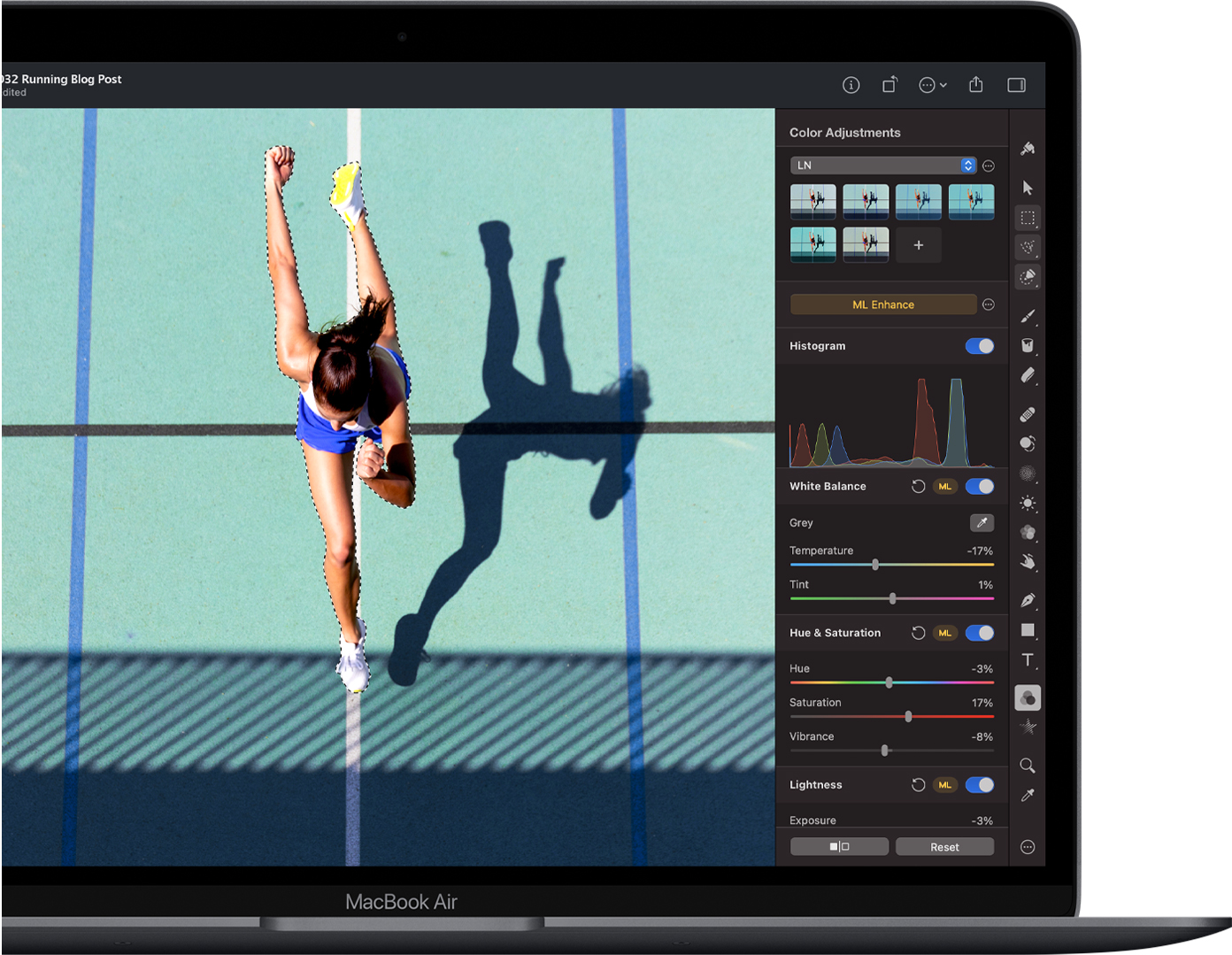 Nhanh hơn tới 9 lần. Ngay cả đối với Công cụ thần kinh 16 lõi, đó là rất nhiều điều cần xử lý.Các ứng dụng trên MacBook Air có thể sử dụng công nghệ máy học (ML) để tự động chỉnh sửa ảnh như một người chuyên nghiệp, làm cho các công cụ thông minh như đũa thần và bộ lọc âm thanh tự động phát hiện chính xác hơn, v.v.Đó không chỉ là sức mạnh của bộ não - đó còn là sức mạnh của toàn bộ công nghệ ML.
