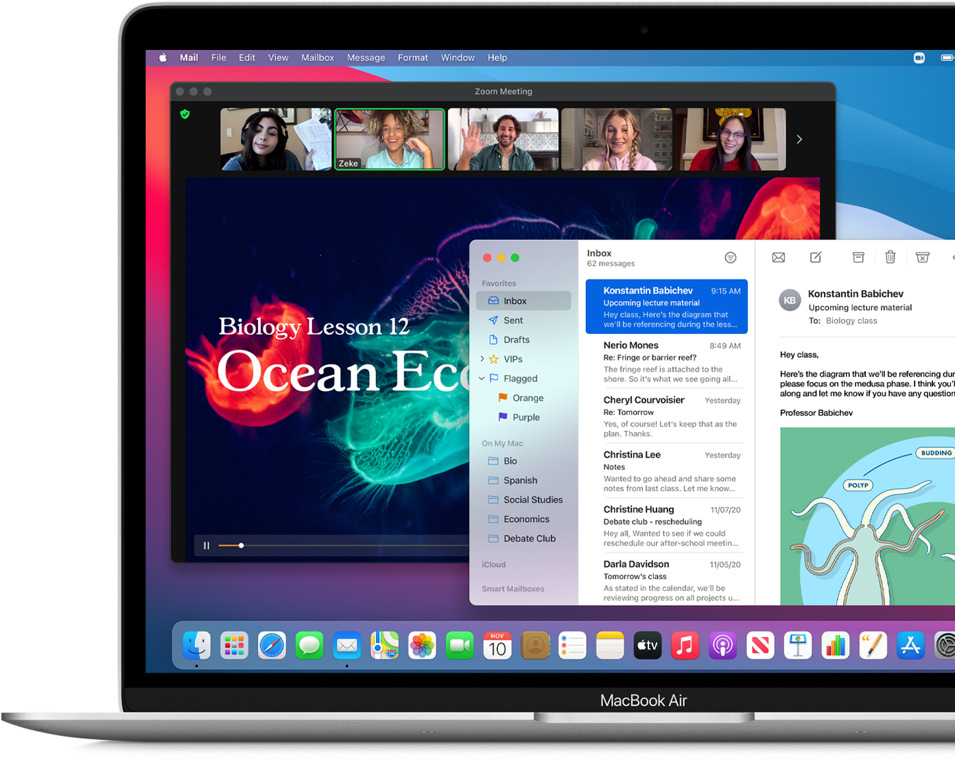 Sức mạnh của macOS Big Sur trên M1. Được phát triển để khai phá tiềm năng của chip M, macOS Big Sur biến Mac với những lợi ích hiệu suất chính và hơn thế nữa. Cập nhật mạnh mẽ cho các ứng dụng. Một thiết kế mới đẹp. Các tính năng bảo mật hàng đầu trong ngành và bảo mật tốt nhất. Đây là phần mềm mạnh mẽ nhất từ trước đến nay của chúng tôi - chạy trên phần cứng tiên tiến nhất của chúng tôi.