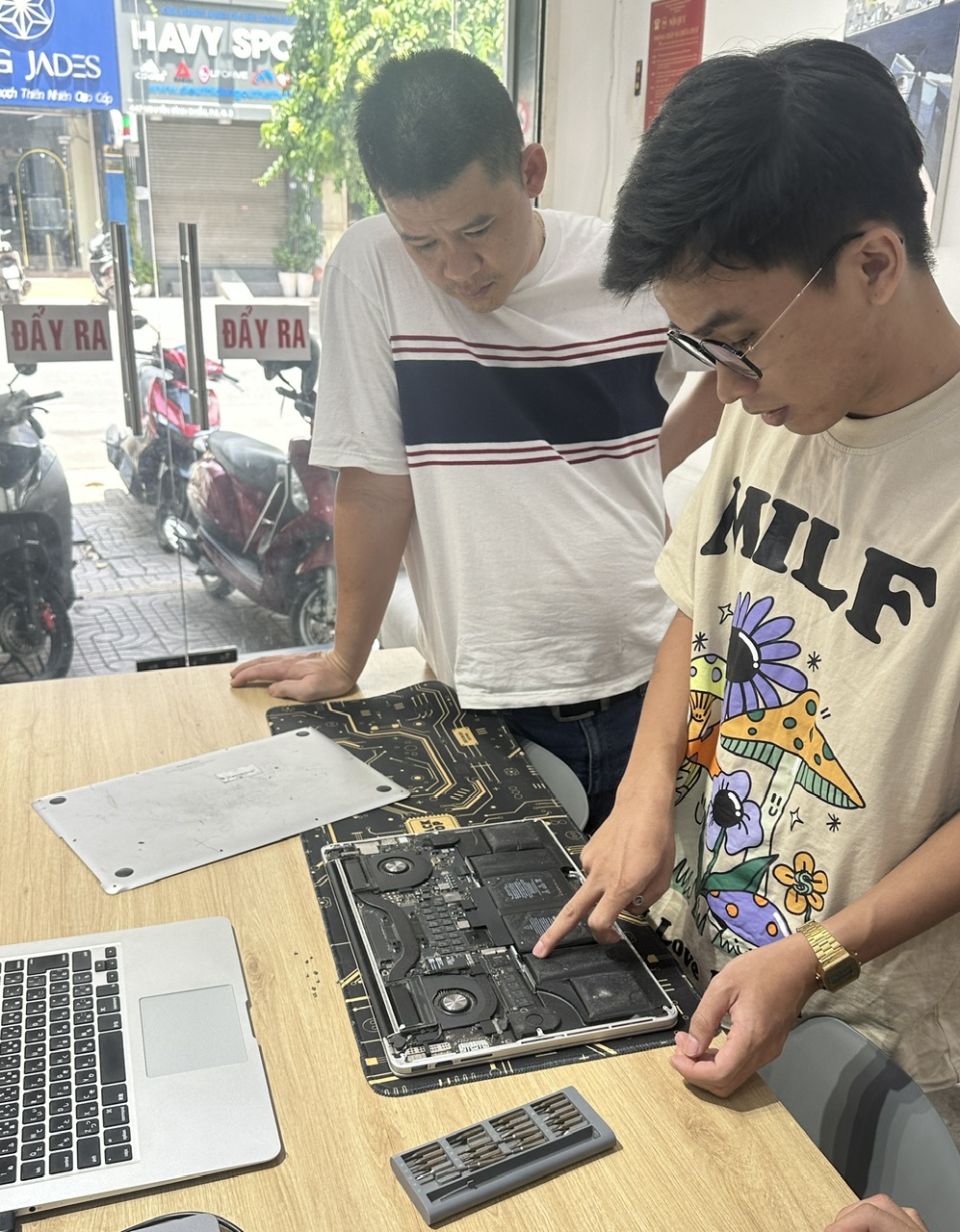 Sau khi xác định màn hình cần thay mới, chúng tôi sẽ tiến hành tháo vỏ máy và tháo màn hình cũ một cách cẩn thận. Quá trình này được thực hiện bởi đội ngũ kỹ thuật giàu kinh nghiệm để đảm bảo không gây hư hỏng cho các linh kiện khác trong MacBook.